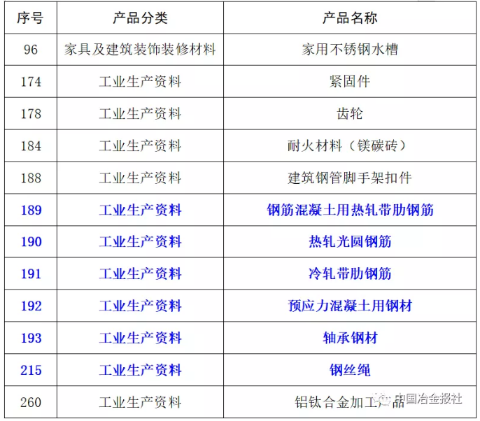 其中包括六種鋼材產(chǎn)品和部分鋼材相關(guān)產(chǎn)品(見(jiàn)下表)