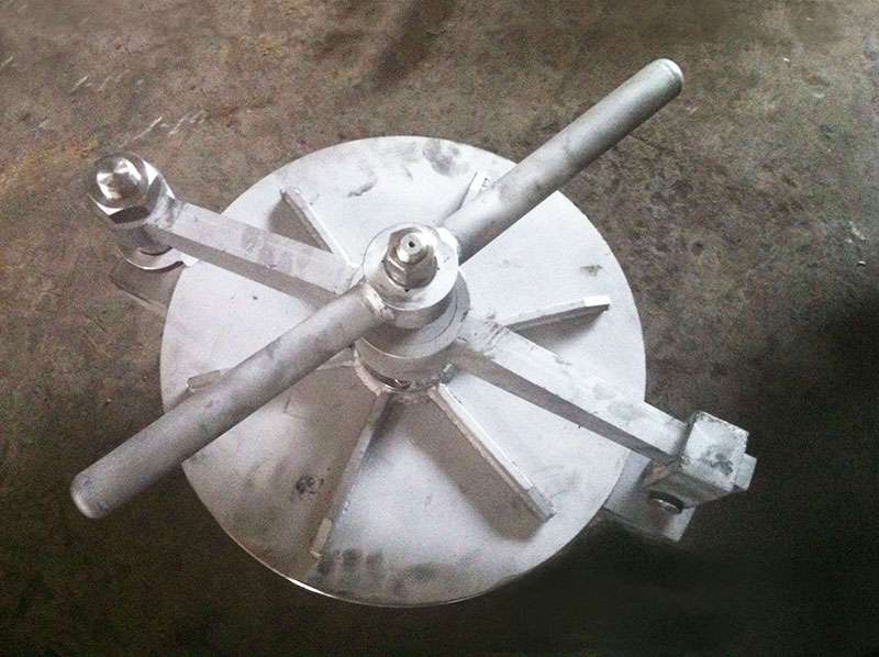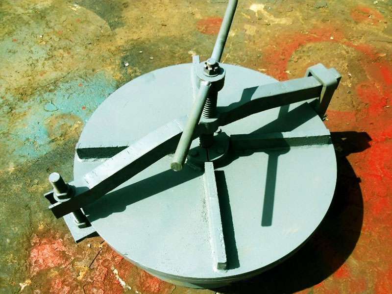 旋柄快開(kāi)人孔即縮小的人孔,其安設(shè)是為了安裝、拆卸、清洗和檢修設(shè)備內(nèi)部裝置。 旋柄快開(kāi)人孔的結(jié)構(gòu)基本相同,由一個(gè)短筒節(jié),蓋上一塊盲板構(gòu)成。旋柄快開(kāi)人孔直徑一般為150~250mm,應(yīng)使工人戴上手套并握住工具的手能方便地通過(guò),標(biāo)準(zhǔn)化旋柄快開(kāi)人孔的公稱直徑有DN150、DN250兩種。當(dāng)設(shè)備公稱直徑大于或等于1000mm時(shí),宜設(shè)置旋柄快開(kāi)人孔。