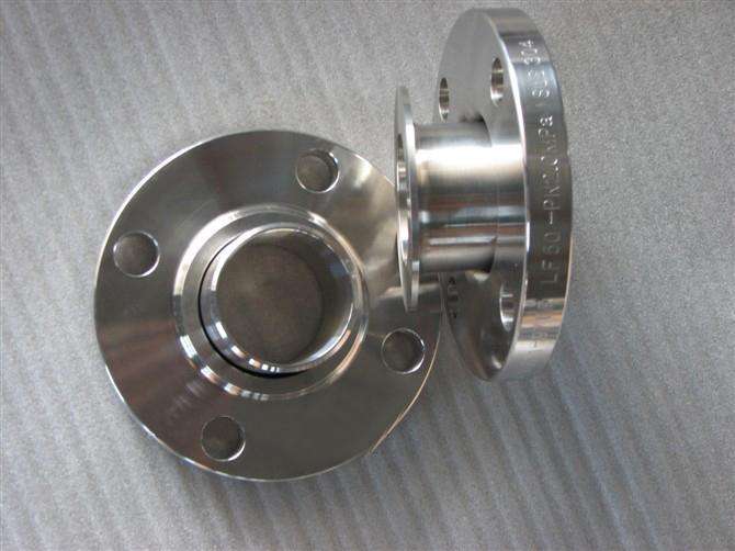 松套法蘭片是利用翻邊、鋼環(huán)等把法蘭套在管端上,法蘭可以在管端上活動。鋼環(huán)或翻邊就是密封面,法蘭的作用則是把它們壓緊。由此可見由于被鋼環(huán)或翻邊擋住,松套法蘭不與介質接觸。