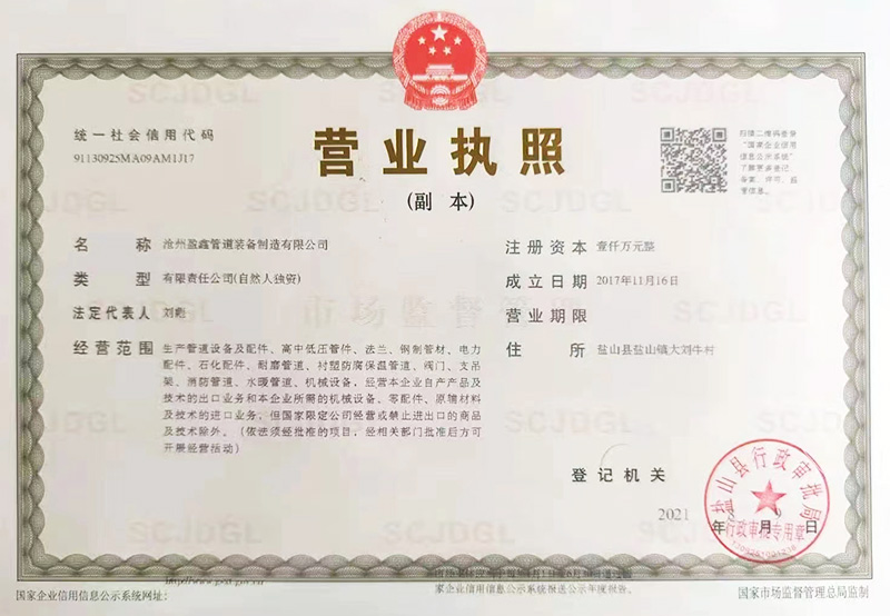 滄州盈鑫管道裝備制造有限公司位于有"中國管道之都"之稱的河北鹽山。風(fēng)雨兼程十余載,盈鑫公司一直秉承"誠信務(wù)實(shí),品質(zhì)至上"的經(jīng)營方針,現(xiàn)在已經(jīng)成為一家集研制、生產(chǎn)、銷售和服務(wù)于一體的大型的管道裝備制造企業(yè),并致力于向管道裝備行業(yè)的先鋒邁進(jìn)。
